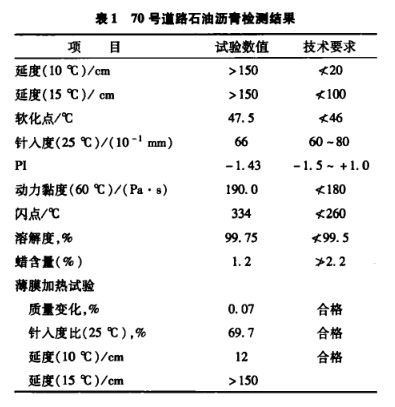 本試驗使用的基質瀝青為70號泰普克道路石油瀝青,SBS改性劑為線型岳陽石化1301-1型改性劑,原材料的檢測結果見表1和表2。