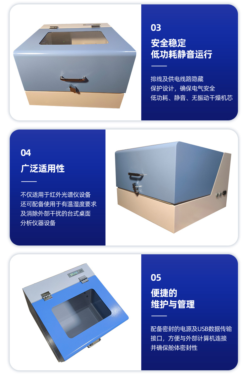 DRY-04智能電子防潮箱電子防潮箱,專為賽默飛 IS50 紅外光譜儀量身定制,以領先的防潮技術,為精密儀器筑牢安全防線。搭載高性能電子除濕機芯,結合微電腦濕度控制系統(tǒng),具備節(jié)能低耗、靜謐無噪、濕度直觀顯示等顯著優(yōu)勢。作為專為傅立葉變換紅外光譜儀量身定制的配套附件,其精密的防塵防潮設計,可有效提升設備核心部件的使用壽命,為儀器的穩(wěn)定運行與精準檢測提供可靠保障。- 產品描述